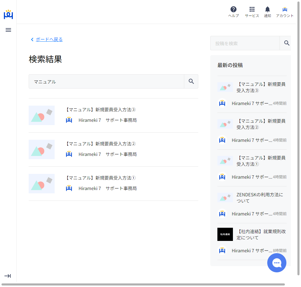 例えば、業務マニュアルの場合であればタイトルに【マニュアル】などと付けて投稿することで、投稿されている内容のうち、【マニュアル】と付いたものだけを検索結果に表示させることもできます。