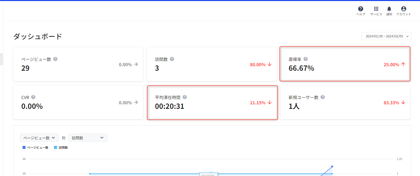 複数ページのサイトを作成するそもそもの目的である「より多くの情報を発信する」ということを考えると、「回遊率」の高さは作成したサイトが目的どおりに働いているかを判断する指標になりますので、Webサイト機能のダッシュボードで確認するようにしましょう。