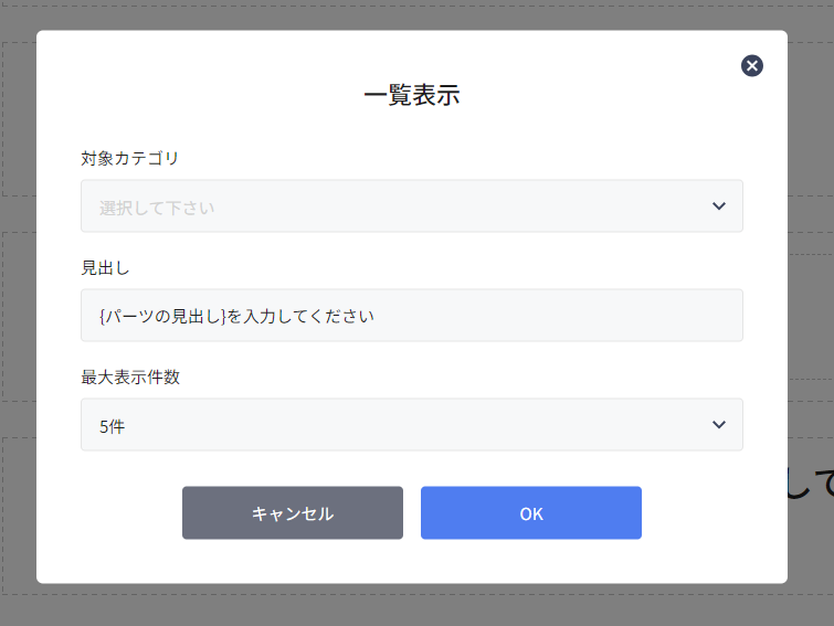 見出し・・・一覧の上部に表示されるタイトルを入力します。