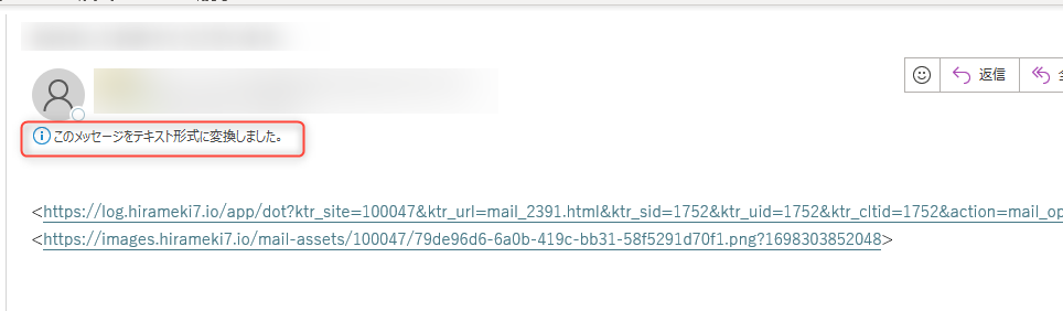 HTMLメールを受信しても画像が表示されないケースとして、セキュリティ設定によりテキスト形式に変換されている場合があります。残念ながら、送信側ではコントロールできない部分となりますので、受信者側にテキスト形式からHTML形式に変更するようにお知らせいただく必要があります。