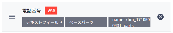 氏名・生年月日など、セットパーツとして既に用意されているもの以外に、例えば電話番号を入力させる回答欄が欲しい場合はテキストフィールドパーツを使って設定することができます。