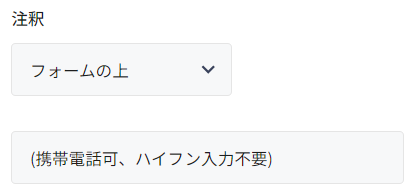 入力欄の上もしくは下に自由にテキストで注釈を設定することができます。