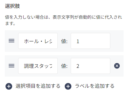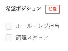 アルバイト等の応募フォームでは、どの職務での就労を希望するか、選択式の回答欄を用意します。