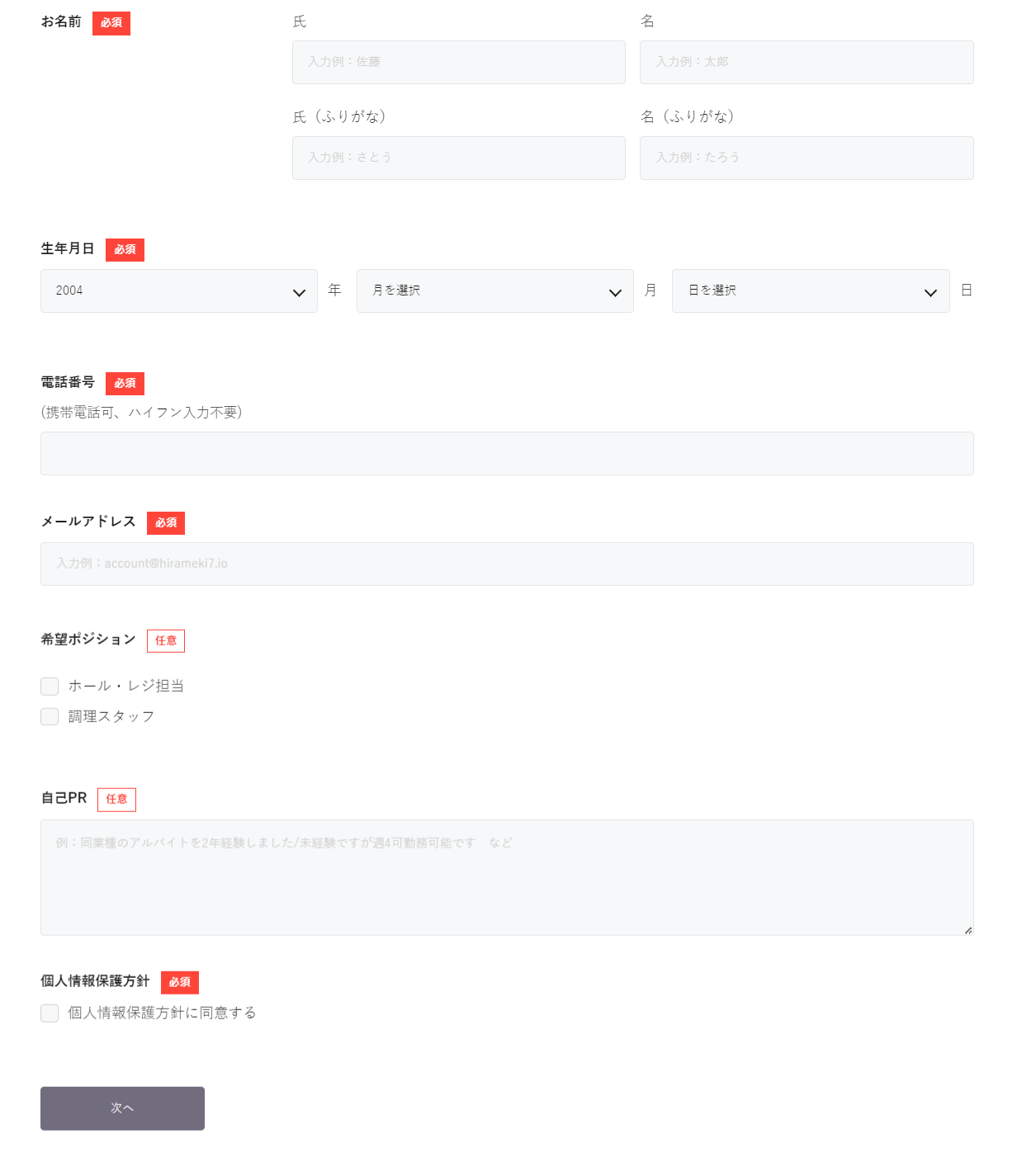 基本的な応募フォームのサンプル