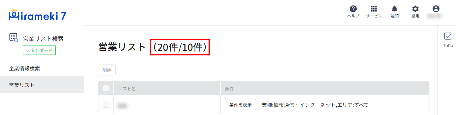 新たに営業リストを追加するには、登録リスト件数がスタンダードオプションでの最大件数10件を下回る必要がある為、9件以下となるようリストを削除をしてください。