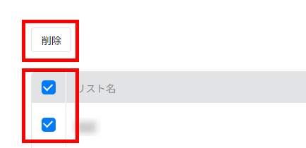 消したいリスト名の左にあるチェックボックスにチェックを入れ、「削除」をクリックするとリストが削除されます。