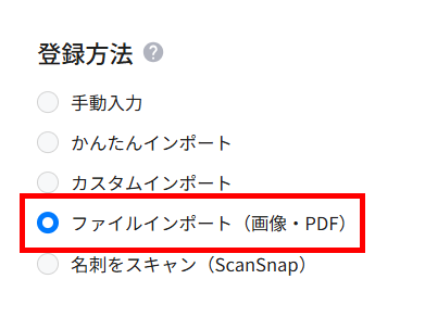「登録方法」の項目から「ファイルインポート」を選択します。