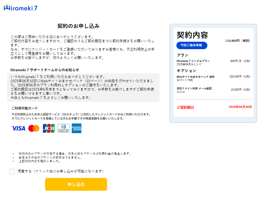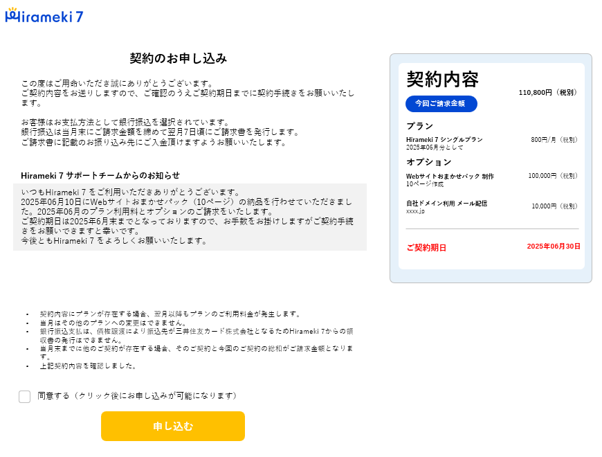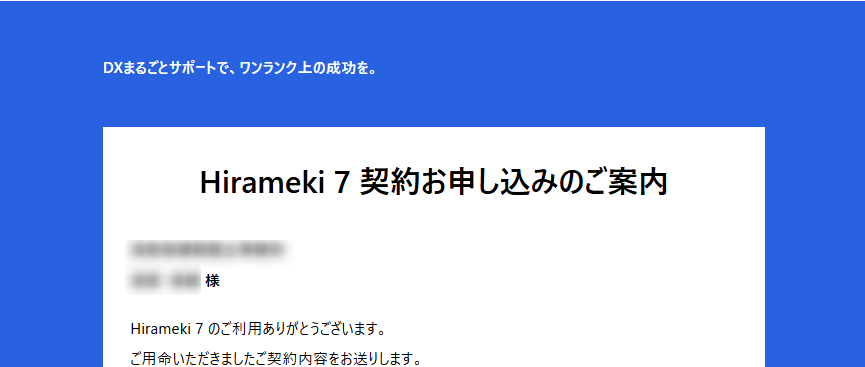 件名:「【Hirameki 7】契約お申し込みのご案内」