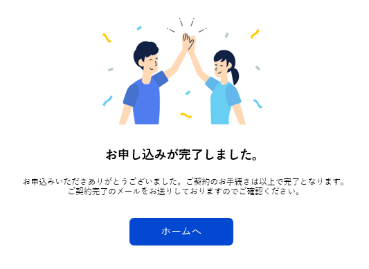 完了画面が表示されれば決済およびお申込みは正常に完了しています。