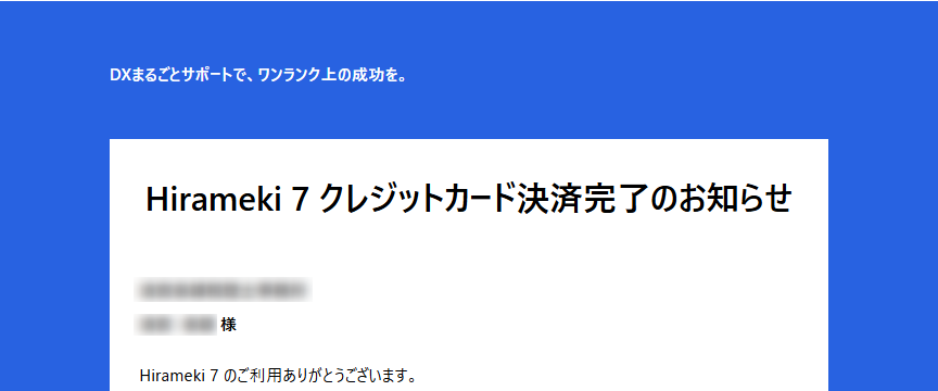 件名:「【Hirameki 7】決済完了のお知らせ」
