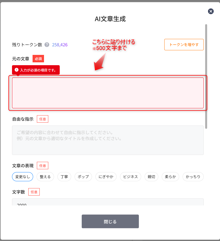 ✔AI文章生成でもトークンの消費があります。