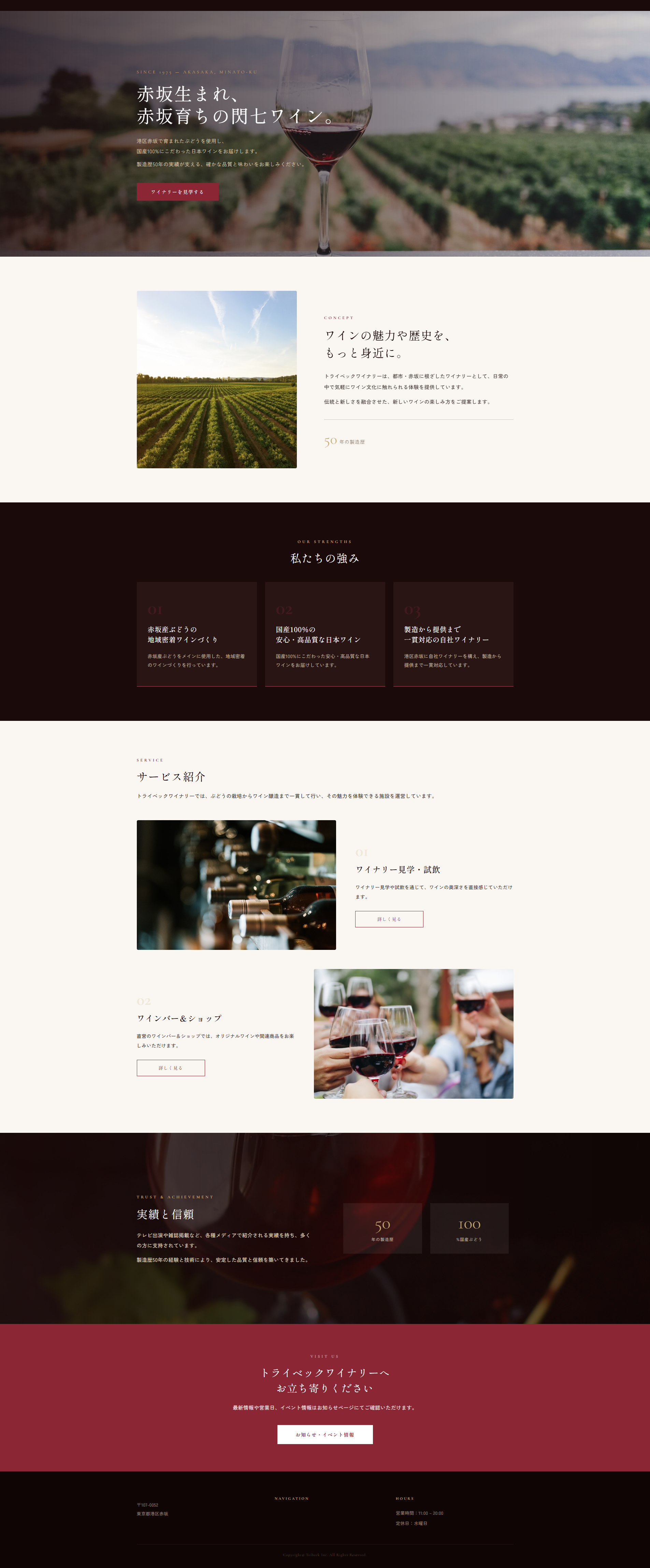- サブテキスト「赤坂産ぶどうをメインに、国産100%日本ワインの製造を手掛けて50年」を配置