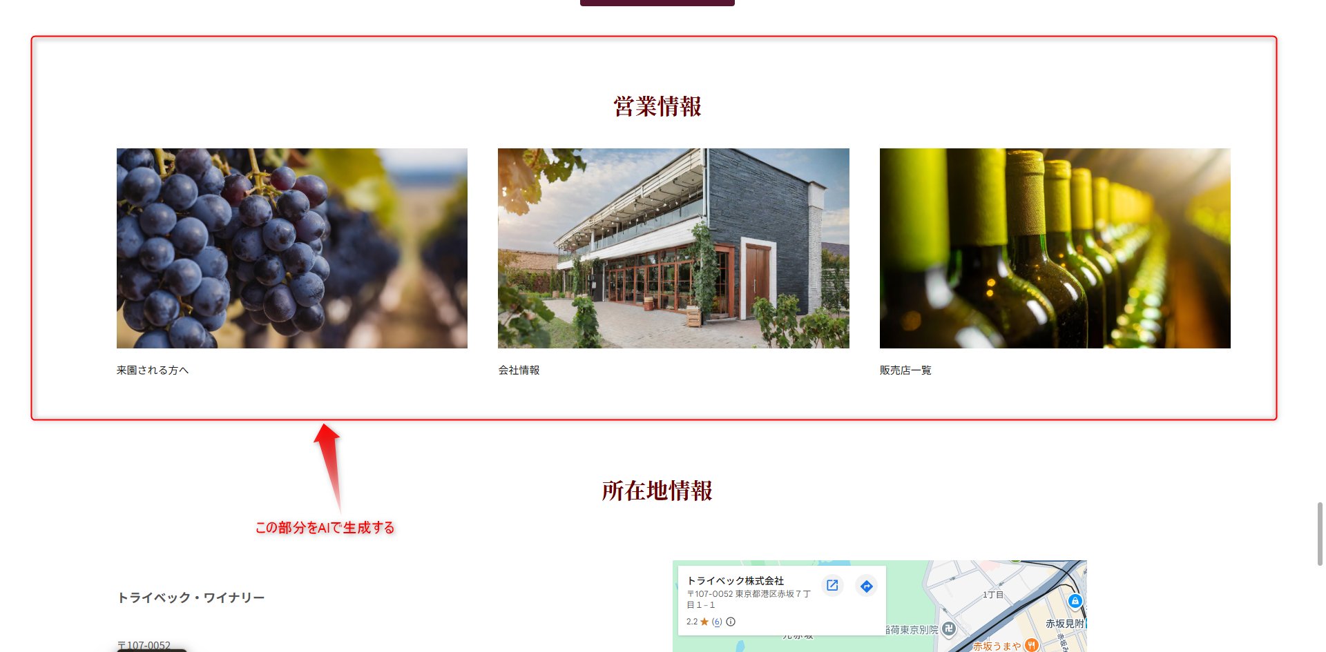 - ワイナリーの紹介文(見学・試飲無料の訴求)を掲載