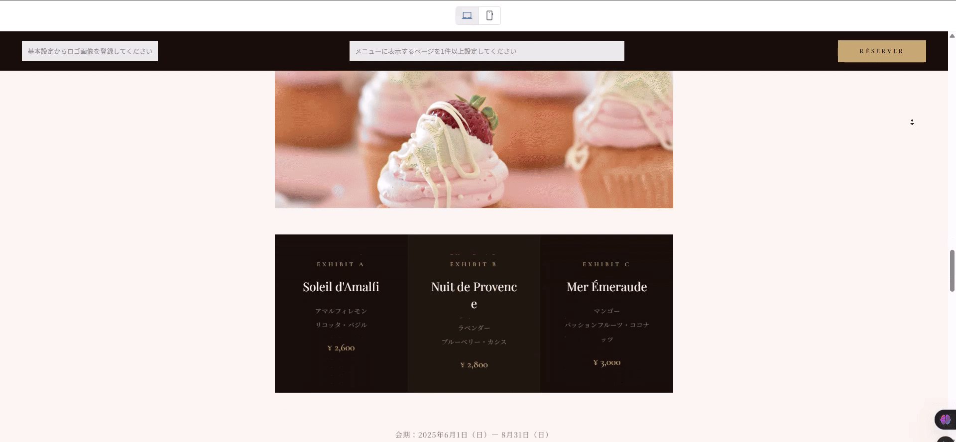 ※この設定はページ最上部のセクションのみ設定可能です