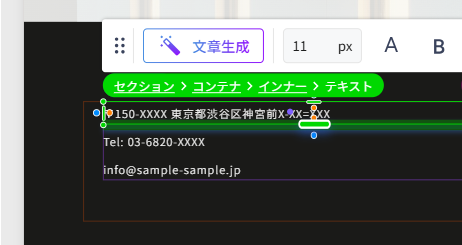👉各テキストパーツを選択した状態で、エディタ上で直接入力が可能です。
